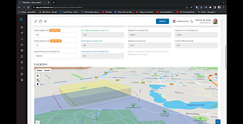 According to SORA 2.5, the calculations for the adjacent area have been added. This is also entered on the map. The operational volume is now also displayed in 3D on the map.